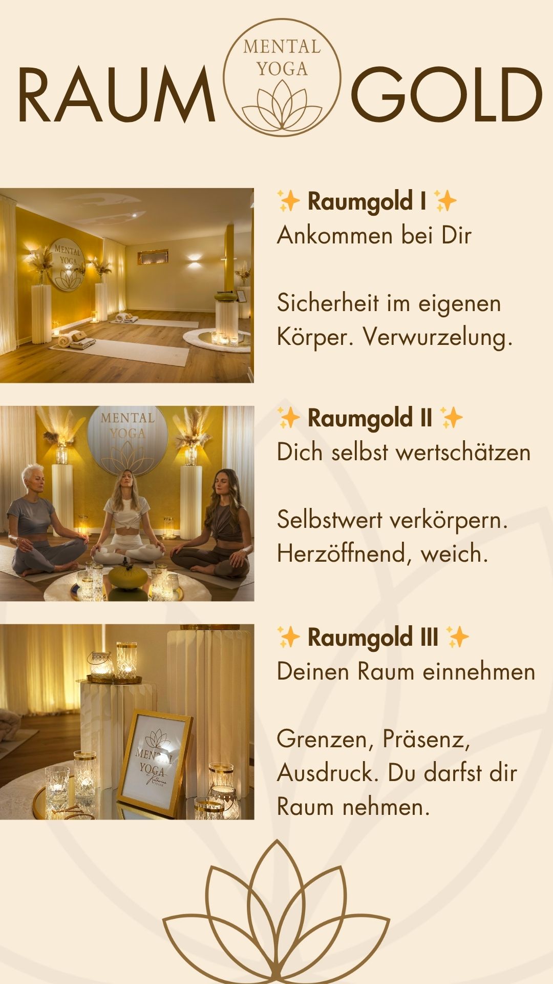 I) Ankommen bei Dir II) Dich selbst wertschätzen III) Deinen Raum einnehmen
